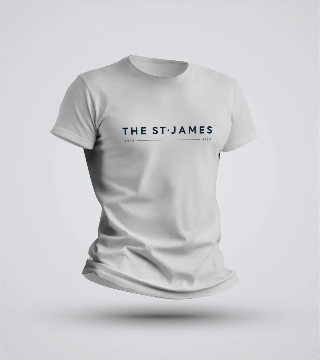A streamlined event identity for the fifth anniversary of The St. James Flagship. STJ first opened its doors in September of 2018, and around that time every year they’ll host a family friendly “homecoming” event to celebrate another successful year helping people reach their fullest potential. September of 2023 marked the fifth anniversary, and the team asked for a special event identity to commemorate the occasion.